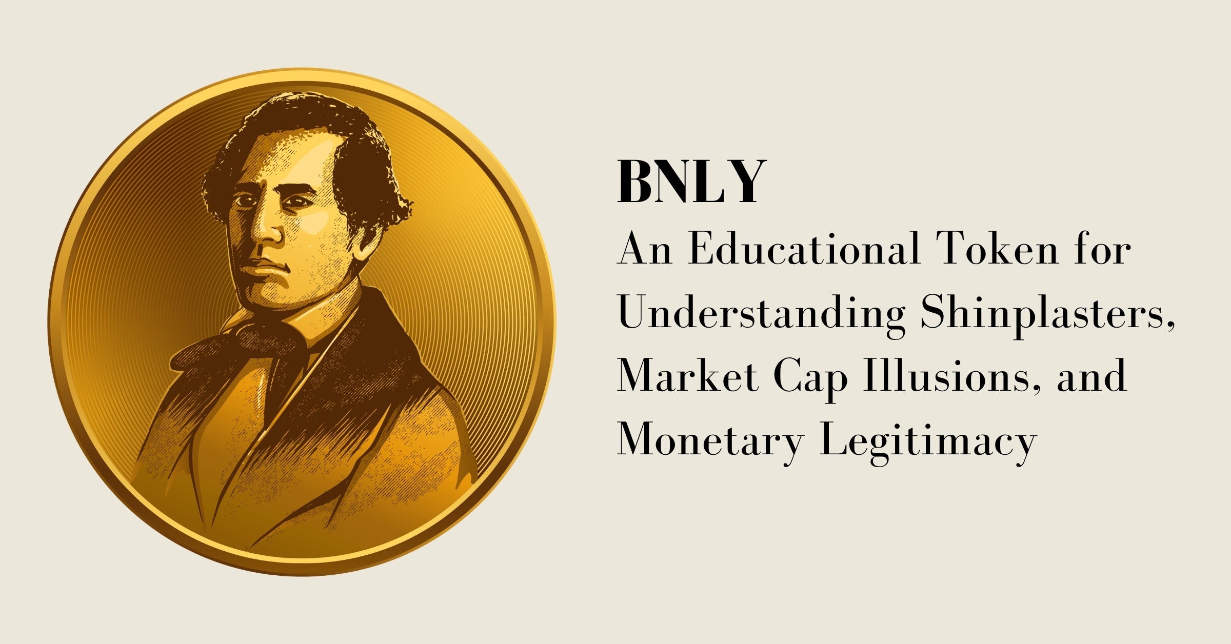 In the 19th century, shinplasters were small-denomination, privately issued notes used when hard currency was scarce. Though often valueless or unbacked, they functioned as currency within local systems. BNLY is a modern shinplaster--visually legitimate, technically functional, but economically hollow. It challenges the public to ask: What backs value, and who controls the illusion?